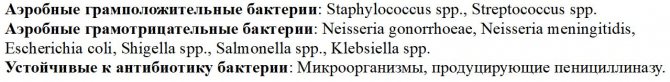 - Інші: гонококові інфекції, лістеріоз, ураження шкірного покриву і м’яких тканин. Інші хвороби, що викликаються чутливими до препарату патогенами.