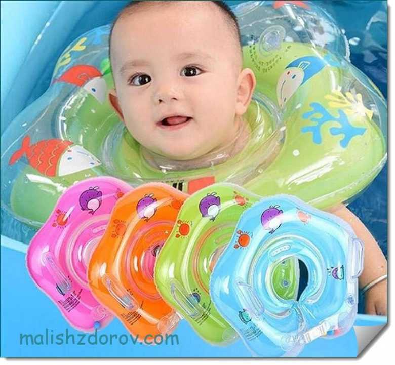 У перший рік життя купання дитини з колом допоможе йому швидко звикнути до води і адаптуватися до купання.