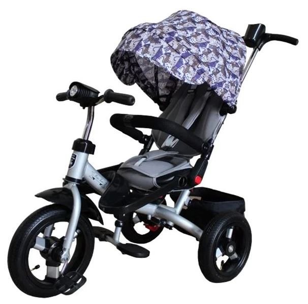 Яскравий триколісний велосипед від 1 року, який неодмінно сподобається, як дітям, так і їх батькам. Гарний, модний, стильний, надійний, він оснащений усіма необхідними функціями і масою додаткових аксесуарів. Крім стандартної ручки-штовхача, яка в цій моделі відрізняється високою міцністю, зручного м’якого сидіння, великого тенту, підніжок, закривається, що важливо, кошики для іграшок, в комплект також входить сумка для мами, додаткова підставка для ніг, задній гальмо, музична панель , спеціальний ключ для її відключення, LED фара.