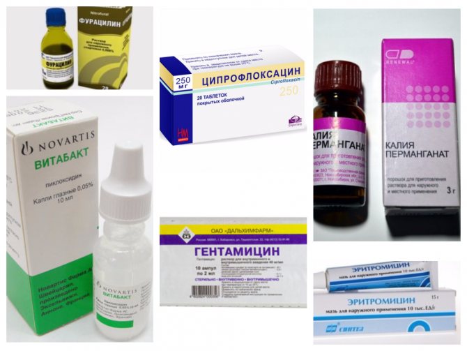 - При кон’юнктивіті – очні краплі: Гентаміцин, Ципрофлоксацин, Вітабакт, мазі Еритроміцин, Тетрациклін, промивання слабким розчином перманганату калію, фурациліну. При ускладненнях можуть бути призначені препарати внутрішньом’язово і внутрішньовенно.